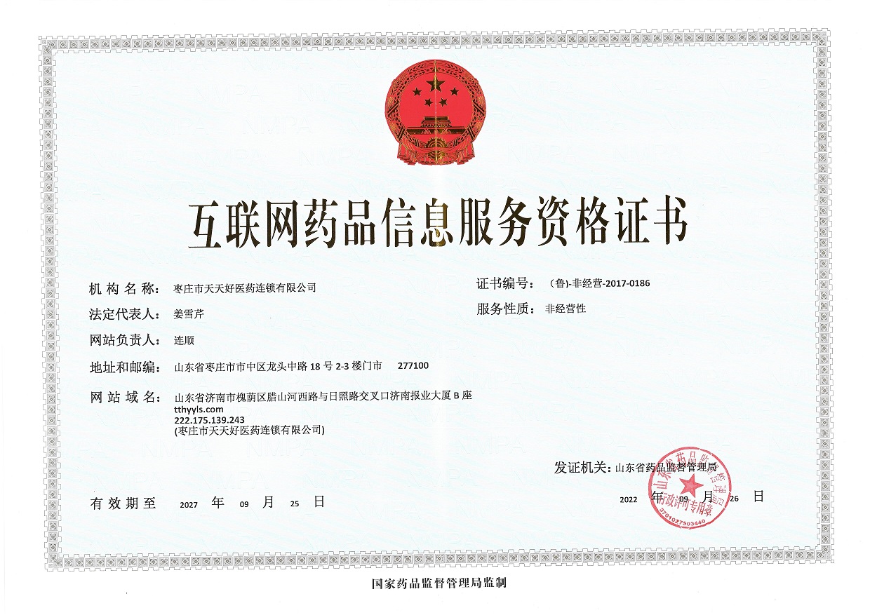 你好,歡迎訪問棗莊市天天好醫(yī)藥連鎖有限公司官網(wǎng)!
